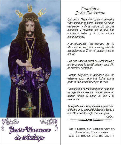 Jesus de Nazareth, Cristo Rey, hijo de Dios. Llamado Santo de La Atalaya esta situado en LA BASILICA MENOR, (tambien conocida como Basilica "San Miguel de la Atalaya") en Atalaya, Santiago de Veraguas, Panama.